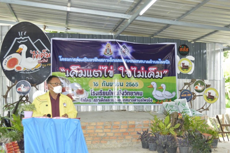 เมื่อเร็วๆนี้ นายพงศ์ณพัศ สุภาพ รองนายกเทศมนตรีตำบลไพรบึง อ.ไพรบึง จ.ศรีสะเกษ เปิดเผยว่า เทศบาลตำบลไพรบึง ได้จัดทำโครงการส่งเสริมอาชีพสภาเด็กและเยาวชนเทศบาลตำบลไพรบึง กิจกรรม “เค็มแต่ไข่ ใจไม่เค็ม” ขึ้น ที่ห้องโสตทัศนูปกรณ์ อาคารเรียน 4 โรงเรียนไพรบึงวิทยาคม อ.ไพรบึง จ.ศรีสะเกษ โดยมี นายสุจินต์ หล้าคำ ผอ.โรงเรียนไพรบึงวิทยาคม พร้อมด้วย นางภรภรณ์ ท่อนทองแดง ผอ.กองการศึกษาเทศบาลตำบลไพรบึง น.ส.นาถชญา เสนคราม ประธานคณะกรรมการสภาเด็กและยาวชนเทศบาลตำบลไพรบึง คณะผู้บริหารสถานศึกษา คณะครู นักเรียน จาก 4 โรงเรียน ประกอบด้วย โรงเรียนไพรบึงวิทยาคม โรงเรียนบ้านสำโรงพลัน โรงเรียนอนุบาลไพรบึง และโรงเรียนบ้านสวาย-สนวน เข้าร่วมกิจกรรมด้วย