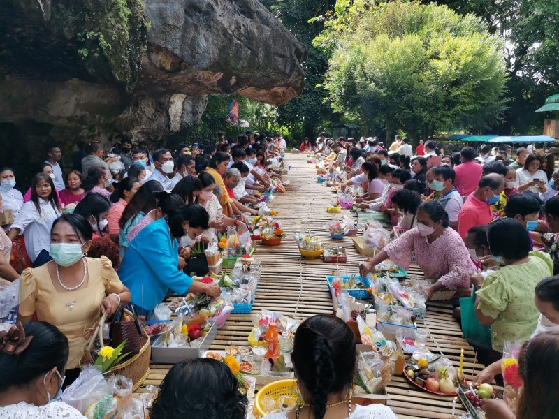 สำหรับประเพณีวันสารทเดือนสิบของชาวไทยพุทธทางภาคใต้ ประชาชนส่วนใหญ่จะนำปิ่นโตอาหาร ขนมเดือนสิบ อาทิเช่น ขนมต้ม ขนมเทียน ขนมท่อนใต้ ข้าวพอง ขนมลา ขนมบ้า มาร่วมทำบุญอุทิศให้บรรพบุรุษ นอกจากนี้ ยังมีการวางข้าวสารอาหารแห้ง อาหารคาวหวาน ขนมสารทเดือนสิบ รวมถึงเงินเหรียญและธนบัตร พร้อมเขียนชื่อผู้ที่ล่วงลับ ญาติ บรรพบุรุษ ใส่ร่วมกับสิ่งของต่าง ๆ เพื่อนำวางไว้ที่ลานชิงเปรต ซึ่งจะมีกลุ่มชาวไทยใหม่หรือชาวเลมาร่วมรับบุญเป็นประจำทุกปี สำหรับปีนี้พบว่ามีผู้เข้าร่วมประเพณีวันสารทเดือนสิบกว่าหนึ่งพันคน ทำให้บรรยากาศภายในวัดสุวรรณคูหา คึกคักเป็นอย่างมาก