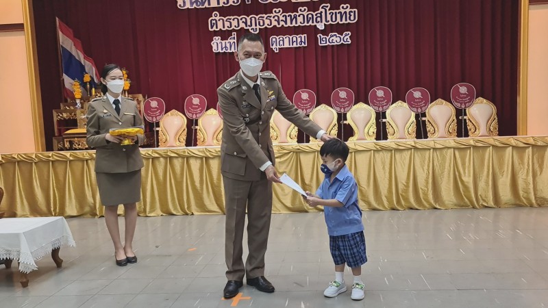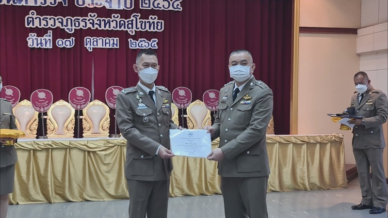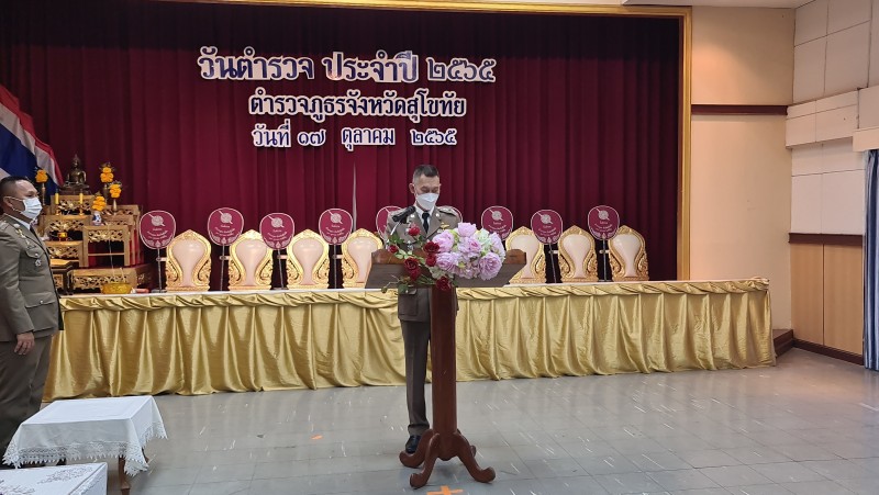 วันที่ 17 ตุลาคม 2565 พล.ต.ต.อมรศักดิ์ เกษมก์สิริ ผบก.ภ.จว.สุโขทัย เป็นประทานในพิธีอ่านสาร จาก พล.ต.อ.ดำรงศักดิ์ กิตติประภัสร์ ผบ.ตร.เนื่องในวันตำรวจประจำปี 2565 มีเจ้าหน้าที่ตำรวจในสังกัด ภ.จว.สุโขทัย เข้ารับฝังการอ่านสาร และรับชมวีดีทัศน์ประวัติความเป็นมาของสำนักงานตำรวจแห่งชาติ และผลการปฏิบัติงานของ ภ.จว.สุโขทัยในรอบปี จากนั้น ได้มอบเกียรติบัตรแสดงความขอบคุณจากพล.ต.อ.กิตติ์รัฐ พันธุ์เพ็ชร์ รองผู้บัญชาการตำรวจแห่งชาติ คณะทำงานสร่างเสริมภูมิคุ้มกันภัยอาชญากรรมทางเทคโนโลยี สำนักงานตำรวจแห่งชาติ ให้แก่ พ.ต.อ.ไพบูลย์ กาศอุดม ผกก.สภ.เมืองสุโขทัย ที่มีผลการปฏิบัติการดีเยี่ยมในการเสริมสร้างภูมิคุ้มกันภัยอาชญากรรมทางเทคโนโลยี ให้กับประชาชนในพื้นที่