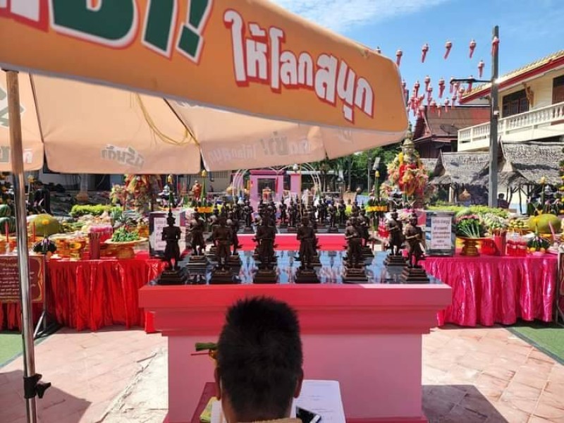 นักเสี่ยงโชคลุ้นเลขเด็ดหางประทัด พิธีบวงสรวง ท้าวเวสสุวรรณ ท้าวโชคดี และท้าวปลดหนี้ ถือกระดานชนวนมีหนึ่งเดียวในประเทศไทย