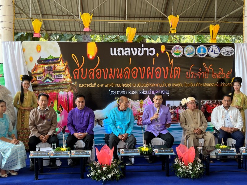 วันที่ 1 พฤศจิกายน 2565 นายเชษฐา โมสิกรัตน์ ผู้ว่าราชการจังหวัดแม่ฮ่องสอน นายอุกฤษฏ์ แสงงาม นายกองค์การบริหารส่วนตำบลปางหมู นายพงษ์พีระ ชูชื่น นายอำเภอเมืองแม่ฮ่องสอน นายภานุเดช ไชยสกูล นายกสมาคมธุรกิจการท่องเที่ยวแม่ฮ่องสอน ททท.แม่ฮ่องสอน และ ทีมงานองค์การบริหารส่วนตำบลปางหมู เปิดแถลงข่าวเตรียมจัดงานประเพณีสิบสองมนล่องผ่องไต (งานประเพณีลอยกระทงไทใหญ่ ) เพื่อสืบสานประเพณีวัฒนธรรมของชาวไทยใหญ่ ระหว่างวันที่ 8-9 พฤศจิกายน 2565 นี้