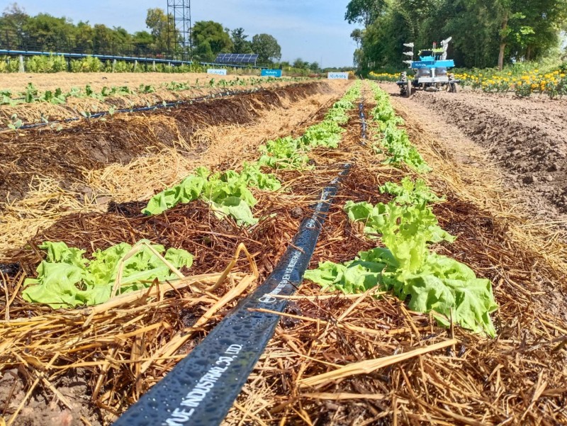 ทั้งนี้ พื้นที่ภายในฟาร์มมีทั้งหมด 11 ไร่ แบ่งออกเป็น 6 โซน ได้แก่ 1. โซน Green House หรือโรงเรือนอัจฉริยะ สามารถปลูกพืชและควบคุมผลผลิตให้ได้คุณภาพ อีกทั้งยังลดความเสี่ยงจากภัยธรรมชาติตลอดทั้งปี ภายในโซนมีระบบเซนเซอร์วัดอุณหภูมิ ความชื้น และความเข้มแสง รวมทั้งมีระบบการให้น้ำแบบเรียลไทม์ผ่านแอปพลิเคชัน พืชที่ปลูก ได้แก่ เมล่อน 2.โซนไม้ผลมูลค่าสูง เป็นการสร้างทางเลือกสำหรับการเพาะปลูกพืชและเป็นแหล่งสร้างรายได้ระยะยาว สำหรับพืชที่ปลูกภายในฟาร์ม ได้แก่ ทุเรียน อะโวคาโด โกโก้ นอกจากนี้ยังปลูกกล้วยน้ำว้า เพื่อเป็นแนวกันลม พร้อมทั้งนำนวัตกรรมระบบให้น้ำอัจฉริยะเข้ามาใช้ในพื้นที่ด้วย