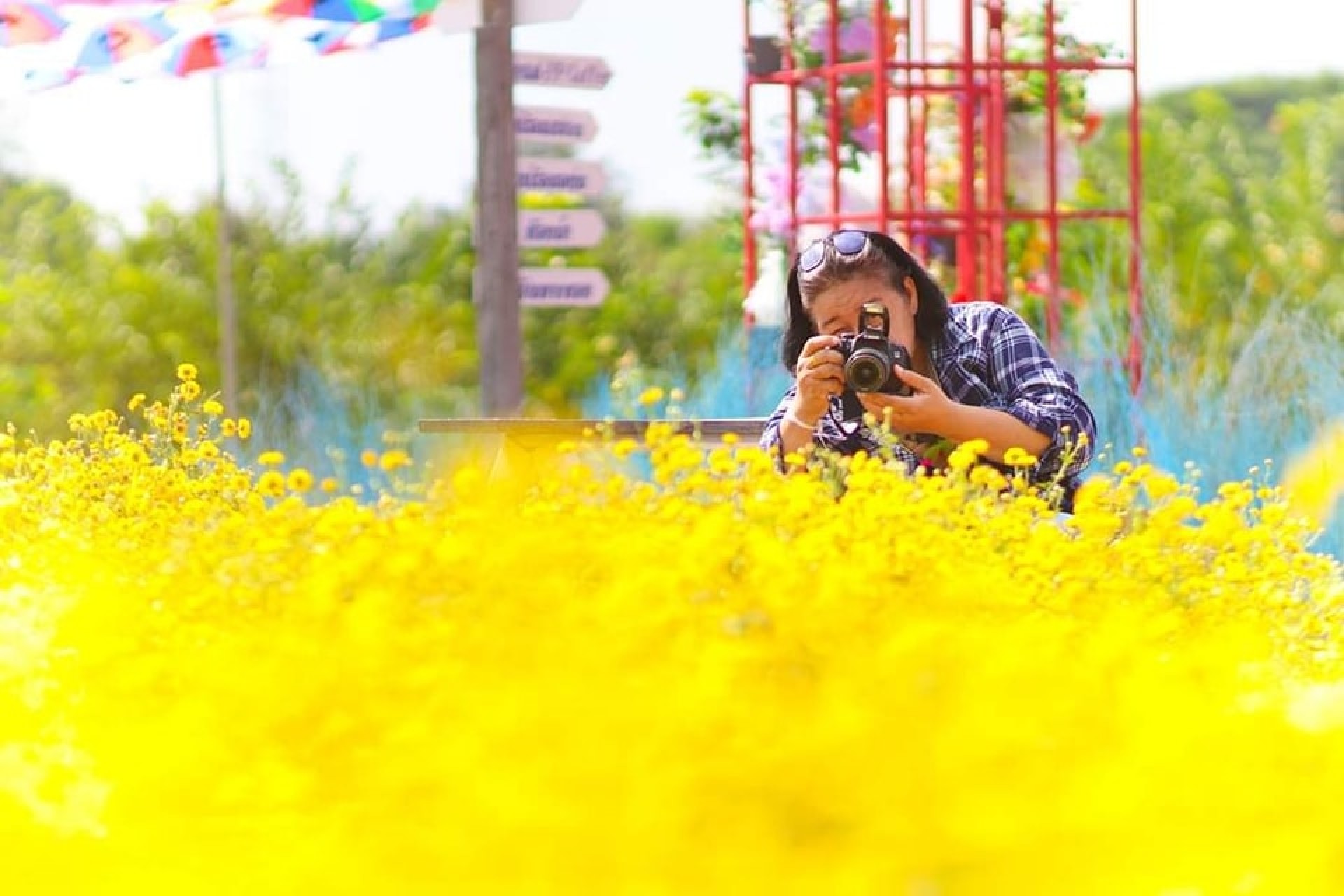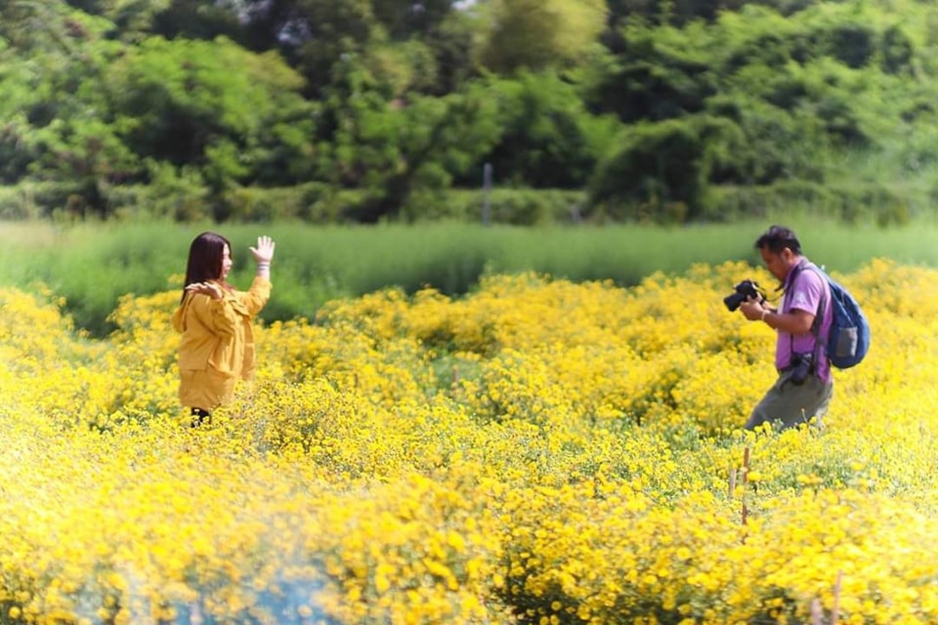 นางพนมพร ภู่อ่ำ อายุ 50 ปี นักวิทยาศาสตร์การแพทย์ชำนาญการ เจ้าของเจพีฟาร์ม เล่าให้ฟังว่า ทางเจพีฟาร์มประสบความสำเร็จกับการผลัดเปลี่ยนหมุนเวียนปลูกทุ่งดอกไม้สลับกันทั้งฤดูร้อนและฤดู โดยช่วงนี้กำลังเข้าสู่ช่วงฤดูหนาว ก็ได้เลือกสายพันธุ์ดอกไม้เป็นดอกเก๊กฮวยสีเหลือง และดอกบลูซัลเวียสีม่วง ที่ตอนนี้กำลังเบ่งบานสีเหลืองทอง สลับกับสีม่วง โดยดอกไม้ทั้ง 2 สายพันธุ์เริ่มปลูกไว้ตั้งแต่ช่วงเดือนสิงหาคมที่ผ่านมา และกำลังเบ่งบานได้ประมาณ 2 สัปดาห์แล้ว และจะเบ่งบานยาวๆ ไปจนถึงช่วงปีใหม่ เพื่อสลับให้ดอกคัสเตอร์และดอกมากาเร็ตได้เบ่งบานไปจนสิ้นฤดูหนาวต่อไป โดยทางฟาร์มได้จัดมุมถ่ายรูปไว้หลากหลายให้นักท่องเที่ยวได้มาเช็คอินถ่ายรูปกันได้