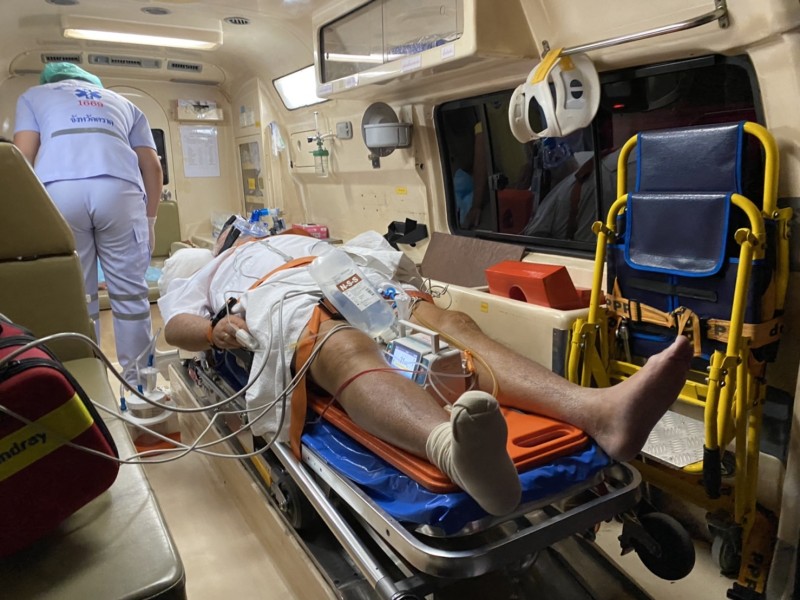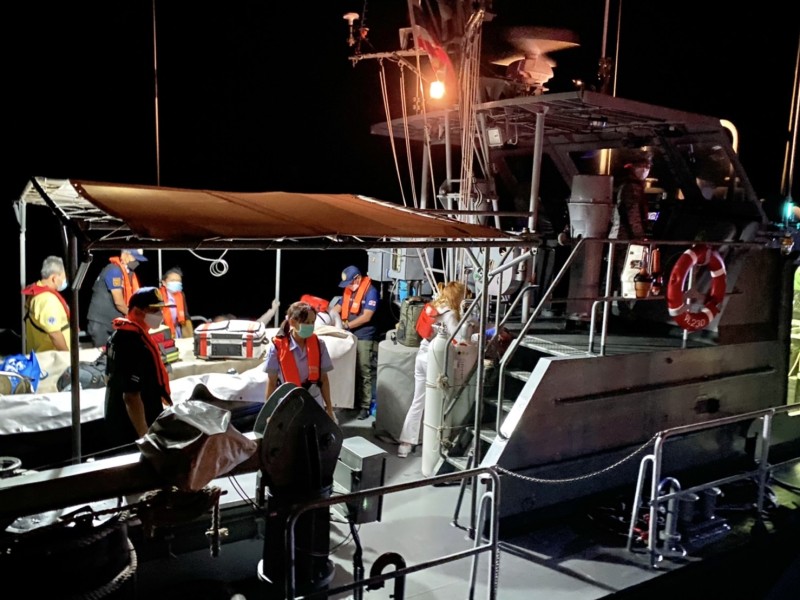 หลังจากนั้น จึงประสานงานกับทีมแพทย์ โรงพยาบาลตราด และทีมแพทย์ โรงพยาบาลคลองใหญ่ ในการเดินทางพร้อมอุปกรณ์ทางการแพทย์ไปให้ความช่วยเหลือตามพิกัดดังกล่าว ไปถึงเรือ MEIN SCHIFF 5 ได้รีบให้ความช่วยเหลือในการปฐมพยาบาล ยื้อชีวิต Mr. Thiele, Bernd Joachim Max อายุ 73 ปี มีอาการปอดอักเสบ ภาวะหัวใจล้มเหลว พร้อมกับเร่งนำตัวเดินทางด้วยเรือ ต.230 ฝ่ากระแสคลื่นลมแรง และเป็นเวลากลางคืนด้วย ทำให้ต้องเดินเรือด้วยความล่าช้า โดยทีมแพย์ต้องเร่งช่วยยื้อชีวิต Mr. Thiele, Bernd Joachim Max มาตลอดทาง ใช้เวลาเดินทางนานเกือบ 2 ชม. จนถึงฝั่งท่าเทียบเรืออเนกประสงค์อำเภอคลองใหญ่ นำส่งโรงพยาบาลคลองใหญ่ ให้การรักษาเป็นการเร่งด่วน