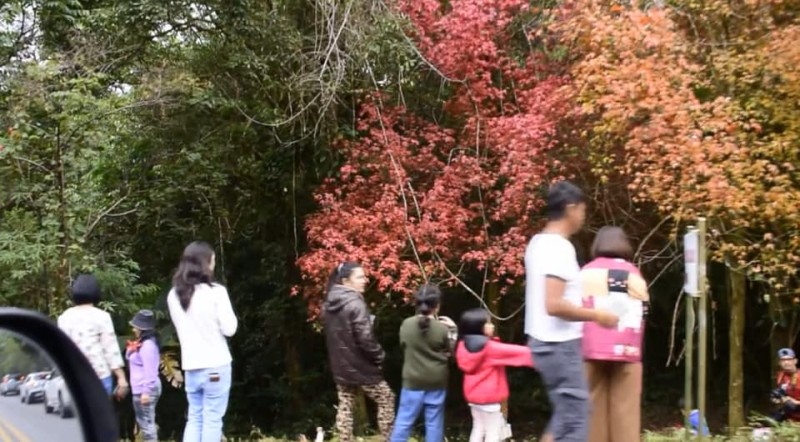 วันที่ 2 ธันวาคม 2565 ทีมข่าวรายงานว่า ในช่วงวันหยุดส่งท้ายปีเก่าต้อนรับปีใหม่ มีประชาชนจำนวนมากต่างเดินทางขึ้นไปสัมผัสอากาศหนาวเย็น และชมธรรมชาติตามจุดต่างๆ ในอุทยานแห่งชาติภูหินร่องกล้า โดยเฉพาะที่โรงเรียนการเมืองการทหาร ซึ่งในช่วงนี้มีใบเมเปิ้ลกำลังพลัดใบเป็นสีแดง หล่นลงพื้นดิน ทำให้นักท่องเที่ยวต่างพากันไปถ่ายรูปเก็บไว้ เนื่องจากเป็นช่วงระยะแรก ที่ใบเมเปิ้ลพลัดใบเป็นสีแดง และจะมีช่วงเวลาอันสั้น คือ ประมาณ 1-2 สัปดาห์เท่านั้น ทำให้นักท่องเที่ยวต่างรีบมาเก็บภาพไปโชว์เพื่อนในโซเซียล