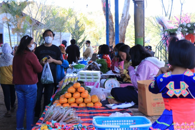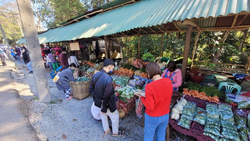 ขณะที่บริเวณตลาดนัดเด็กดอย ที่บ้านใหม่ร่องกล้า ซึ่งเป็นหมู่บ้านกลุ่มชาติพันธุ์เผ่าม้ง ใจกลางอุทยานแห่งชาติภูหินร่องกล้า มีนักท่องเที่ยวต่างๆเลือกซื้อสินค้าพื้นเมือง พืชผลทางการเกษตร ที่เด็กนักเรียนโรงเรียนบ้านห้วยน้ำไซ สาขาบ้านใหม่ร่องกล้า ได้นำมาขายในช่วงวันหยุด ทั้งช่วงเทศกาลและวันหยุดทั่วไป ในราคาย่อมเยาว์ ท่ามกลางอุณหภูมิช่วงเช้า 10 องศา ทีเดียว.