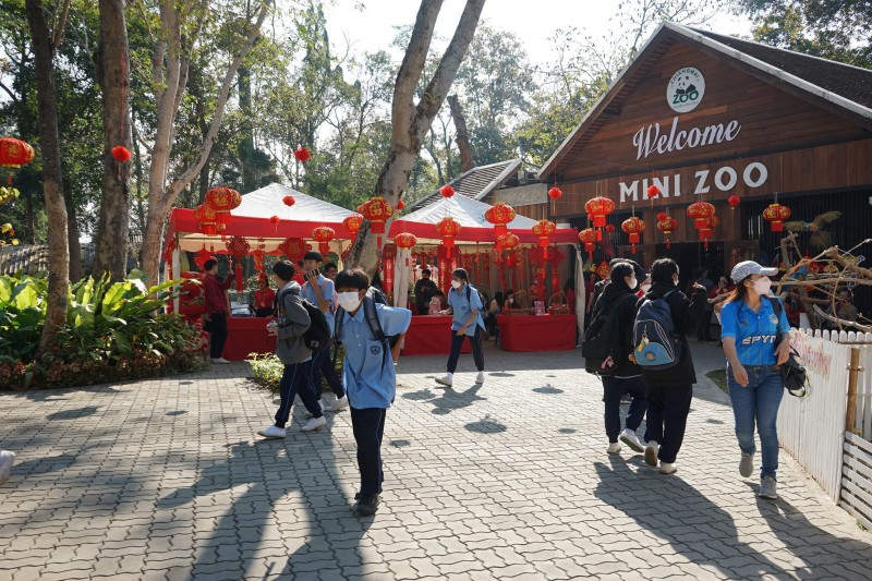 วันนี้มีเด็กๆ นักเรียน จากหลายๆ โรงเรียนเข้ามาเที่ยวชมสวนสัตว์เชียงใหม่ตามอัธยาศัย จำนวนกว่า 2,000 คน (ยังไม่รวมจำนวนนักท่องเที่ยวทั่วไป) ขณะเดียวกัน ผู้อำนวยการสวนสัตว์เชียงใหม่ นำทีมผู้บริหาร พนักงานสวนสัตว์เชียงใหม่ ให้การต้อนรับนักท่องเที่ยว โดยมีการแจกส้มมงคล พวงกุญแจรูปแพนด้าหลินฮุ่ยของที่ระลึกที่สามารถสแกนข้อมูลของสวนสัตว์ได้และแจกอั่งเปา แก่เด็กนักเรียนและนักท่องเที่ยวที่เข้ามาเที่ยวชมสวนสัตว์เชียงใหม่ในวันนี้ พร้อมกับกิจกรรมมากมายรองรับนักท่องเที่ยว เช่น ณ บริเวณมินิซู นักท่องเที่ยวสามารถเข้าสัมผัสใกล้ชิด ถ่ายรูปและป้อนอาหารกับครอบครัวกระต่าย ไม่เพียงเท่านี้ยังได้มีการยกบ่อปลาคราฟ มาให้เด็กๆ ได้ป้อนนมชมอย่างใกล้ชิดอีกด้วย