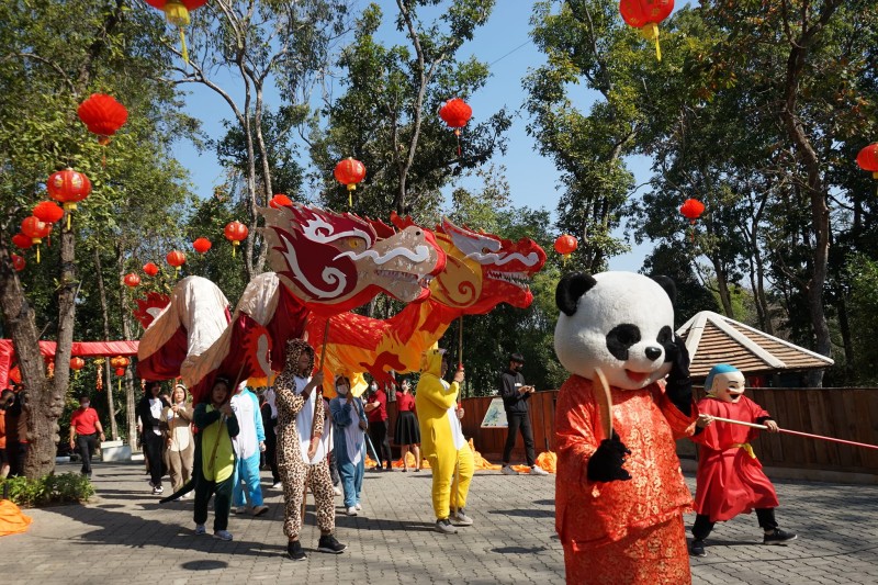มีการตั้งโต๊ะสอนพับซองอั่งเปา, ตัดหน้ากากรูปกระต่าย และการตัดกระดาษรูปสัตว์มงคล ซึ่งได้รับความร่วมมือจากสถาบันขงจื่อ มหาวิทยาลัยเชียงใหม่ กิจกรรมที่พิเศษสุดๆ กับขบวนมาสคอตพาเหรดในธีมตรุษจีน มีการเชิดมังกรคู่ร่วมกับขบวนพาเหรดในรอบพิเศษเฉพาะเทศกาลตรุษจีน ในรอบเวลา 11.00 น.และ 14.00 น. เพียง 2 วันนี้เท่านั้น และพลาดไม่ได้กับการชมความน่ารักของหมีแพนด้าหลินฮุ่ย โดยปีนี้ทีมพี่เลี้ยงได้ทำเซอร์ไพรส์ให้กับหมีแพนด้าหลินฮุ่ย ด้วยการมอบอั่งเปากระต่ายทองและของชอบหลินฮุ่ย ซึ่งประกอบด้วยตุ๊กตากระต่ายทอง และขนมปัง แอปเปิ้ล แครอท และหน่อไม้ใส่ตะกร้าวางไว้ด้านหน้าตุ๊กตากระต่ายวางเป็นของขวัญอั่งเปาให้กับหมีแพนด้าหลินฮุ่ย เวลา 09.00 น. ช่วงเวลาก่อนปล่อยหลินฮุ่ยเข้าสู่ส่วนจัดแสดงฯ ในวันอาทิตย์ ที่ 22 มกราคม 2566 ณ ส่วนจัดแสดงหมีแพนด้า อีกด้วย