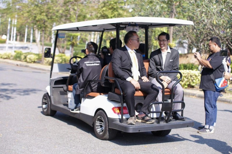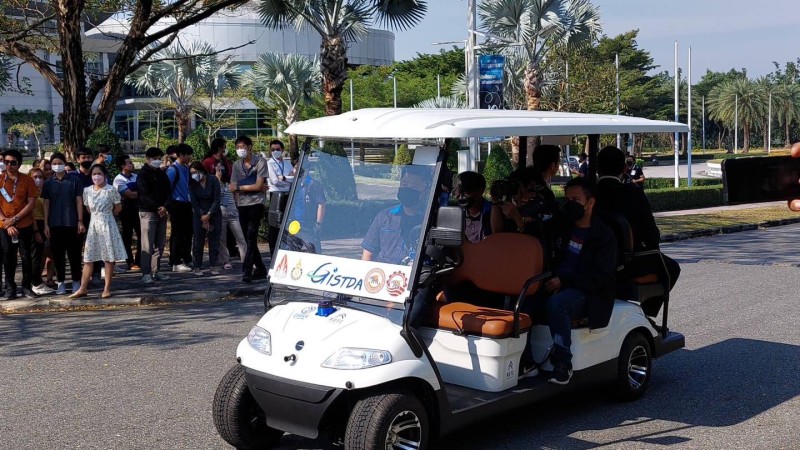ดร.ณัฐวัฒน์ หงส์กาญจนกุล ผู้อำนวยการสำนักงานพัฒนาเทคโนโลยีอวกาศและภูมิสารสนเทศ (Gistda) เป็นประธานการแถลงข่าวและสัมมนาการสาธิตทดสอบรถอัจฉริยะไร้คนขับ Auto Matic Guided Vehicle :AGV พร้อมด้วย รองศาสตราจารย์ ดร.ธนา ราษฎ์รภักดี หัวหน้าโครงการศึกษาและวิจัยเครื่องมือสำรวจและประมวลผลสำหรับ SMART CITY คณะผู้บริหาร นักวิจัย คณาจารย์ นิสิตนักศึกษา และสื่อมวลชน เข้าร่วมงานสัมมนา