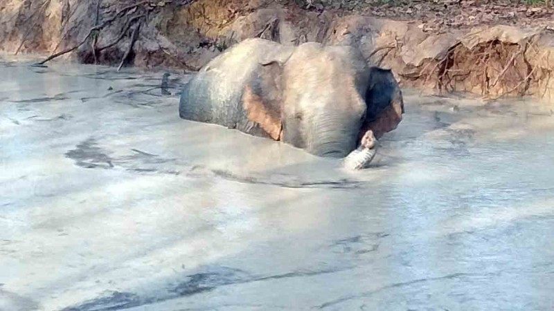 อย่างไรก็ตาม จากการตรวจสอบกรณีนี้พบว่า ช้างป่าตัวกล่าวได้ออกหากินนอกพื้นที่ และติดอยู่ในสระน้ำบริเวณที่ทำกินของชาวบ้านนอกเขตอุทยานแห่งชาติตาพระยา บริเวณทิศเหนือของบ้านราษฎร์รักแดน หมู่ที่ 9 ตำบลหนองแวง อำเภอละหานทราย จังหวัดบุรีรัมย์ ต่อมา จึงได้ประสานหน่วยงานของกำนันประพจน์ โสดก ต.หนองแวง ,เจ้าหน้าที่จุดสกัดบาระแนะ อุทยานแห่งชาติตาพระยา และ ทหาร นพค.52 นำรถแบคโฮเข้าช่วยเหลือ โดยทำการขุดดินขอบสระน้ำให้ลาดต่ำ จนกระทั่ง สามารถช่วยช้างป่าขึ้นมาจากสระน้ำได้สำเร็จ ก่อนเดินกลับเข้าป่าไปอย่างปลอดภัย.