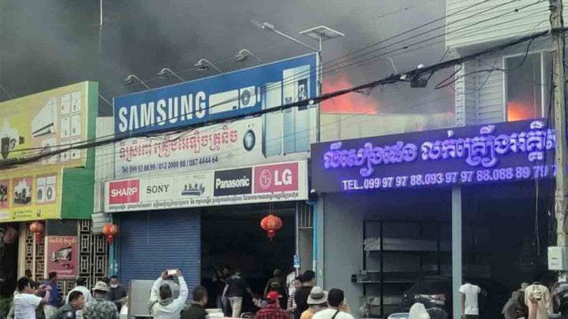ทั้งนี้ ผู้สื่อข่าวรายงานอีกว่า ช่วงเวลาประมาณ 08.30 น.เจ้าหน้าที่กัมพูชา สามารถควบคุมเพลิงให้อยู่ในวงจำกัด ไม่ให้ลุกลามเพิ่มเติม แต่ยังคงมีกลุ่มเพลิงและกลุ่มควันไฟอยู่เป็นระยะ ๆ lส่วนความเสียหายเบื้องต้น ในเหตุการไฟไหม้ดังกล่าว อาคารเสียหายประมาณ 10 คูหา ส่วนใหญ่เป็นร้านจำหน่ายเครื่องใช้ไฟฟ้า ,ร้านจำหน่ายโทรศัพท์ ,ร้านจำหน่ายคอมพิวเตอร์และอุปกรณ์ และร้านจำหน่ายยางรถยนต์และอะไหล่รถยนต์ มูลค่าความเสียหายอยู่ระหว่างรอการประเมิน โดยต้นเพลิงเกิดจากร้านจำหน่ายเครื่องใช้ไฟฟ้า ซึ่งเจ้าหน้าที่คาดว่า สาเหตุเกิดจากไฟฟ้าลัดวงจรและอุปกรณ์ไฟฟ้าชำรุดจนเกิดประกายไฟ และไม่มีรายงานผู้บาดเจ็บและเสียชีวิต