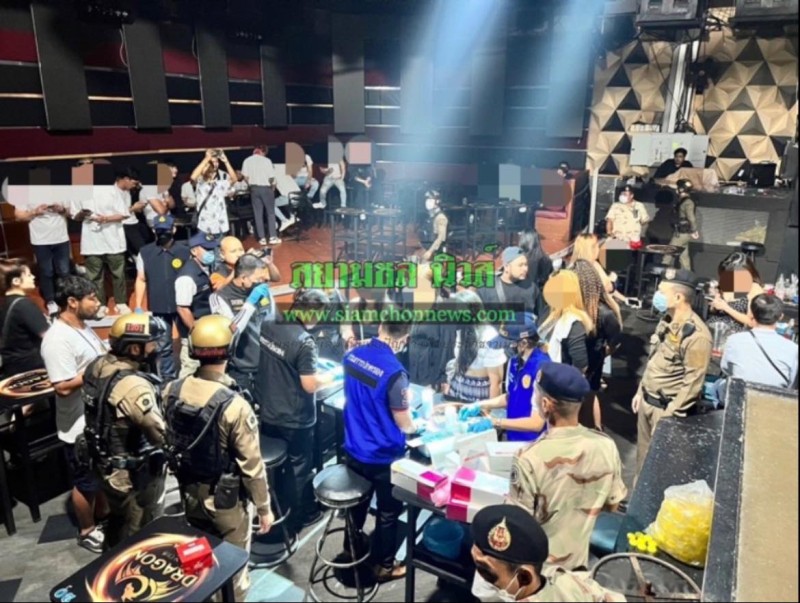 เมื่อเวลา 03.30 น.วันที่ 16 กุมภาพันธ์ 2566 นายพิสิษฐ สิริสวัสดินุกูล นายอำเภอบางละมุง น.ส.กมลชนก ก้อนสมบัติ ปลัดอำเภอบางละมุง พ.ต.ท.สุรเชษฐ เอนกศรี รองผกก.ป.สภ.เมืองพัทยา พ.ต.ท.พิชิต ฉ่ำฮวบ สวป.สภ.เมืองพัทยา จ.ชลบุรี นำกำลังบุกเข้าตรวจสอบจับกุม ดรากอน แมนคลับ พัทยา เลขที่ 80/16 ภายในซอยพัทยากลาง 12 เมืองพัทยา ต.หนองปรือ อ.บางละมุง จ.ชลบุรี หลังพบว่ามีการลักลอบเปิดโดยไม่ได้รับอนุญาต และมียาเสพติดจำนวนมาก รวมถึงสามารถควบคุมตัวผู้ที่มีปัสสาวะสีม่วงอีก 15 ราย