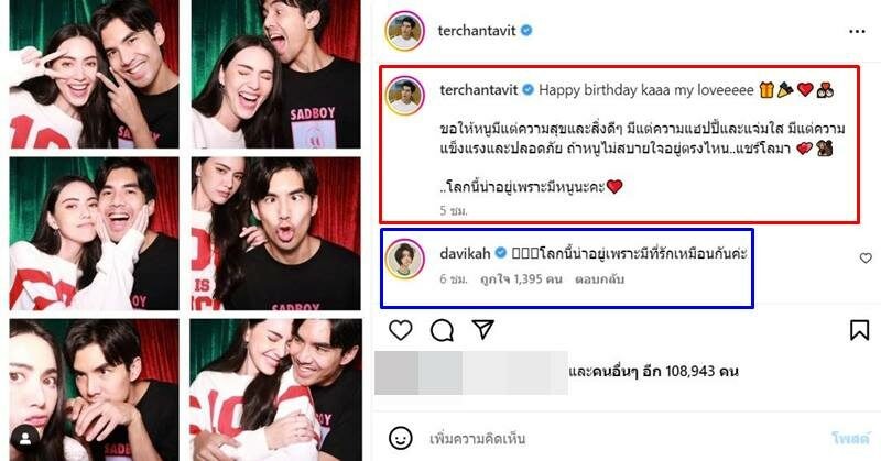 ด้านเจ้าของวันเกิดก็เข้ามาตอบว่า “โลกนี้น่าอยู่เพราะมีที่รักเหมือนกันค่ะ” ซึ่งมีคนในวงการบันเทิงและแฟนๆ เข้ามาร่วมคอมเมนต์อวยพรวันเกิดของสาว “ใหม่” แถมยังไม่พลาดแซวความน่ารักเท่าโลกของคู่นี้กันอีกด้วย