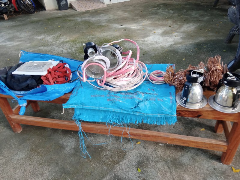 ทั้งนี้ ทางเจ้าหน้าที่ได้ทำการตรวจบ้านพัก ปรากฏว่า พบเจอตัวนายนัฐพงษ์ ผู้ต้องหาอยู่ภายในบ้าน จึงได้ควบคุมตัว ก่อนจะทำการตรวจค้น พบว่า มีของกลางที่ถูกลักขโมยมาเป็นจำนวนมาก ทั้งคอมพิวเตอร์ โน๊ตบุ๊ก รวมถึงสายไฟฟ้า และทรัพย์สินอื่นๆ อีกหลายอย่าง อีกทั้ง ยังพบอุปกรณ์ที่นายนัฐพงษ์จำเป็นต้องใช้ทุกครั้งที่ก่อเหตุ คือ เครื่องวัดค่ากระแสไฟฟ้า ส่วนการตรวจปัสสาวะนายนัฐพงษ์ พบว่ามีสีม่วง