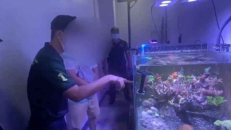 ต่อมาในวันที่ 25 ส.ค.2565 เวลาประมาณ 10.20 น. เจ้าหน้าที่ตำรวจ กก.1 บก.ปทส. ได้ประสานงาน กรมทรัพยากรทางทะเลและชายฝั่ง เพื่อสนธิกำลังและเข้าตรวจสอบโดยนำหมายค้นศาลอาญา เข้าทำการตรวจค้นบ้านพักดังกล่าวพบ นายศรายุธฯ อายุ 37 ปี แสดงตนเป็นเจ้าของบ้าน ผลการตรวจสอบ ภายในพบสัตว์ป่าคุ้มครองประเภทสัตว์ไม่มีกระดูกสันหลังอื่นๆ ได้แก่ ปะการังแข็ง จำนวน 268 ชั้น ถูกเลี้ยงอยู่ในตู้กระจกบรรจุน้ำเค็มสำหรับเพาะเลี้ยงปะการัง และยังพบซากปะการัง จำนวน 10 ชิ้น รวมทั้งหมด จำนวน 278 ชิ้น จึงได้ตรวจยึดทั้งหมดไว้เป็นหลักฐาน เจ้าหน้าที่ตำรวจ กก.1 บก.ปทส. จึงแจ้งข้อกล่าวหาให้ทราบ จากนั้นได้ควบคุมตัวผู้ต้องหาส่งพนักงานสอบสวน กก.1 บก.ปทส. ดำเนินคดีตามกฎหมาย ส่วนของกลางพนักงานสอบสวนนำส่งให้ กรมประมง เพื่อตรวจพิสูจน์และเก็บรักษาต่อไป