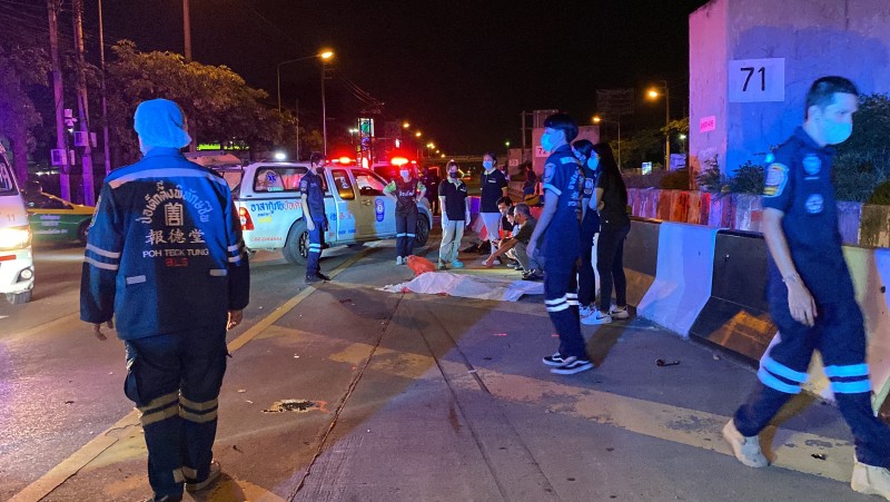 เมื่อเวลา 00.30 น. วันที่ 29 ส.ค. พ.ต.ท.วิทยา คงทอง สว.(สอบสวน)สน.โคกคราม รับแจ้งเหตุรถเก๋งชนท้ายจยย. มีผู้ได้รับบาดเจ็บและเสียชีวิต บริเวณทางกลับรถหลักตอม่อ70 ถนนเกษตรนวมินทร์ แขวงจรเข้บัว เขตลาดพร้าว กทม. จึงรายงานให้ผู้บังคับบัญชาทราบก่อนรุดไปตรวจสอบพร้อมแพทย์นิติเวชรพ.ตำรวจ อาสาสมัครมูลนิติป่อเต็กตึ๊ง