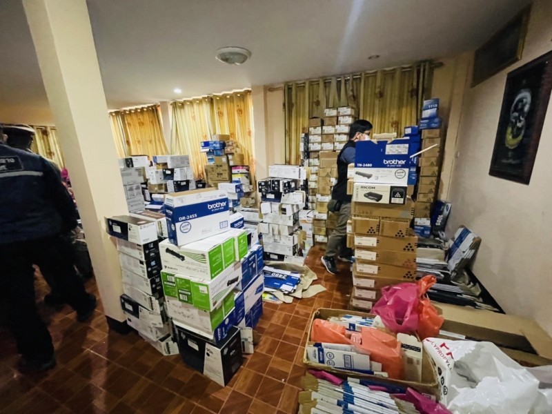 ทั้งนี้ ตามคำสั่งสำนักงานตำรวจแห่งชาติให้ระดมกวาดล้างอาชญากรรม และคำสั่งกองบัญชาการสอบสวนกลางโดย พล.ต.ท.จิรภพ ภูริเดช ผบช.ก. ให้ระดมกวาดล้างอาชญากรรมทั่วไปและการกระทำความผิดรวมถึงการก่ออาชญากรรมเกี่ยวกับการละเมิดทรัพย์สินทางปัญญา เจ้าหน้าที่ตำรวจ กก.1 บก.ปอศ. สืบสวนทราบว่า บ้านหลังหนึ่งในพื้นที่ หมู่ที่ 6 ต.บางน้ำจืด อ.เมืองสมุทรสาคร จ.สมุทรสาคร มีการลักลอบผลิตหมึกปลอม ยี่ห้อ HP, Canon, Brother และ Samsung
