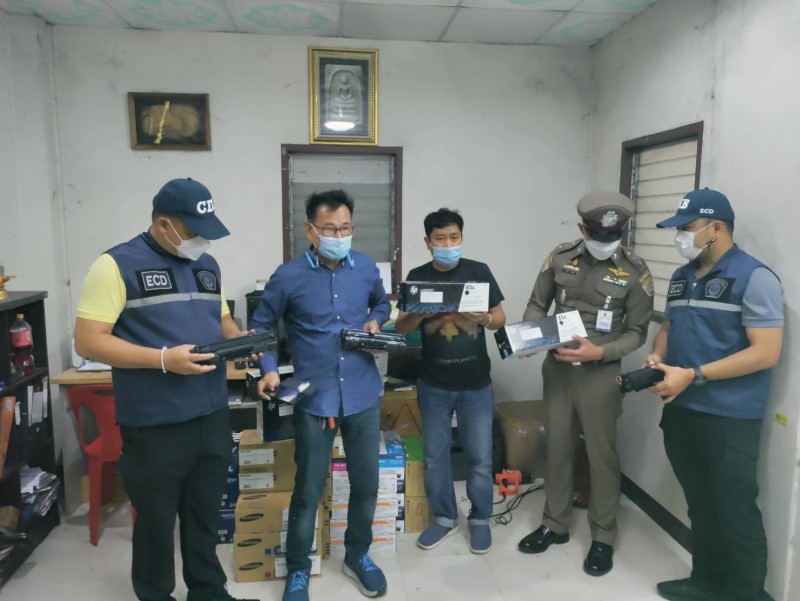 วันที่ 3 กันยายน 2565 พ.ต.ท.ธีรโชติ นุ่นสพ สว.กก.1 บก.ปอศ. พร้อมเจ้าหน้าตำรวจ กก.1 บก.ปอศ., เจ้าหน้าที่จากกรมทรัพย์สินทางปัญญา กระทรวงพาณิชย์ และตัวแทนของ เอชพี ฮิวเลตต์-แพคการ์ด กรุ๊ป แอล แอลซี ร่วมกันตรวจค้นร้านรับซื้อของพื้นที่ หมู่ที่ 6 ต.บางน้ำจืด อ.เมืองสมุทรสาคร จ.สมุทรสาคร และจับกุมตัวผู้ต้องหา นายเมธี (สงวนนามสกุล) อายุ 43 ปี เจ้าของร้านรับซื้อของเก่า ซึ่งต้องหาว่ากระทำความฐาน “ปลอม และมีไว้เพื่อจำหน่าย ซึ่งสินค้าที่มีเครื่องหมายการค้าปลอม เครื่องหมายการค้าของบุคคลอื่นที่ได้จดทะเบียนไว้แล้วในราชอาณาจักร และเอาชื่อ รูป รอยประดิษฐ์ หรือข้อความใดๆ ในการประกอบการค้าของผู้อื่นมาใช้ หรือ ทำให้ปรากฏชื่อสินค้าเพื่อให้ประชาชนหลงเชื่อว่าเป็นสินค้าหรือการค้าของผู้อื่น”