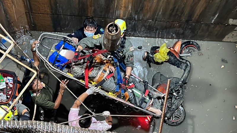 วันที่ 8 กันยายน 2565 ตำรวจ สน.บุคคโล รับแจ้งมีอุบัติรถจักรยานยนต์ตกลงท่อไซต์งานก่อสร้าง ที่บริเวณ ถนน รัชดาภิเษก - ท่าพระ ก่อนถึง ซอย รัชดา-ท่าพระ 7/1 ถนนรัชดาภิเษก แขวงบุคคโล เขตธนบุรี กรุงเทพมหานคร โดยที่เกิดเหตุเป็นถนน 4 เลน ทิศทางมุ่งหน้า แยกท่าพระ มีการนำ ไม้กั้นและแบริเออพลาสติดสีส้มมาปิดกั้นถนนฝั่งซ้าย ที่ติดริมฟุตบาต เนื่องจากผู้รับเหมาก่อสร้างกำลังตรวจสอบระบบท่อประปา ของการประปานครหลวง ซึ่งบริเวณพื้นถนนทีการเปิดฝาท่อคอนกรีต ขนาดใหญ่ ทั้งหมดออก เพื่อจะให้คนงานลงไปปฎิบัติหน้าที่ แต่ภายในท่อนั้น พบรถจักรยานยนต์ ยี่ห้อยามาฮ่า สีส้ม และมีผู้บาดเจ็บนอนหงายอยู่ที่พื้นท่อด้านล่าง ทราบชื่อภายหลังคือ นางกัลยาณี อายุ 55 ปี นอนหงายในสภาพเนื้อตัวเลอะไปด้วยโคลน และไม่สามารถช่วยเหลือตัวเองได้ ทางเจ้าหน้าที่กู้ภัยร่วมกตัญญู ต้องเร่งช่วยเหลือโดยการใช้รถเครนยกผูกติดกับสายสลิงเพื่อนำอุปกรณ์โรยตัวลงช่วยเหลือผู้บาดเจ็บขึ้นมา ซึ่งก้นบ่ออยู่ลึกจากพื้นถนน ประมาณ 6 เมตร เจ้าหน้าที่กู้ภัยใช้เวลากว่า 1 ชั่วโมงในการช่วยเหลือ ก่อนรีบนำส่งโรงพยาบาลตากสิน